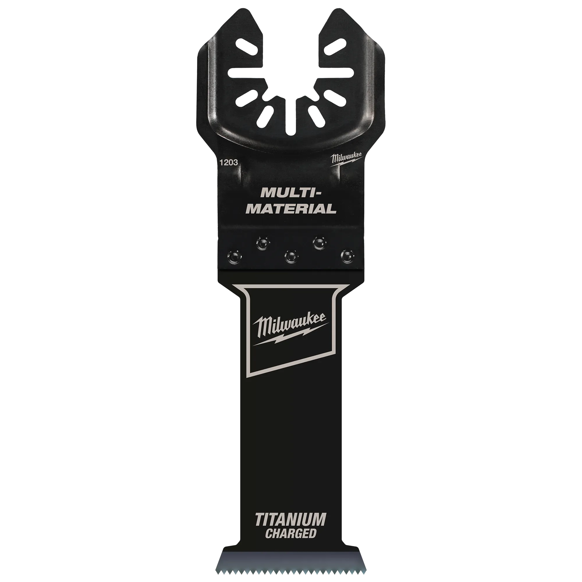 Our OPEN-LOK™ 1-1/4" TITANIUM CHARGED™ Bi-Metal Multi-Material Oscillating Multi-Tool Blades are made from premium high-speed steel. These bi-metal blades are ideal for cuts in wood, nails, PVC, and drywall. TITANIUM CHARGED™ Bi-Metal blades have an optimized titanium blend for maximum wear-resistance and up to 15x longer life vs. high carbon steel (HCS) blades. These blades feature a reinforced Universal Fit OPEN-LOK™ anchor for better strength & control and allow for quick blade changes across 100+ multi-tools. Not compatible with Starlock tools. MILWAUKEE® oscillating multi-tool blades are designed and made in the USA with global materials.